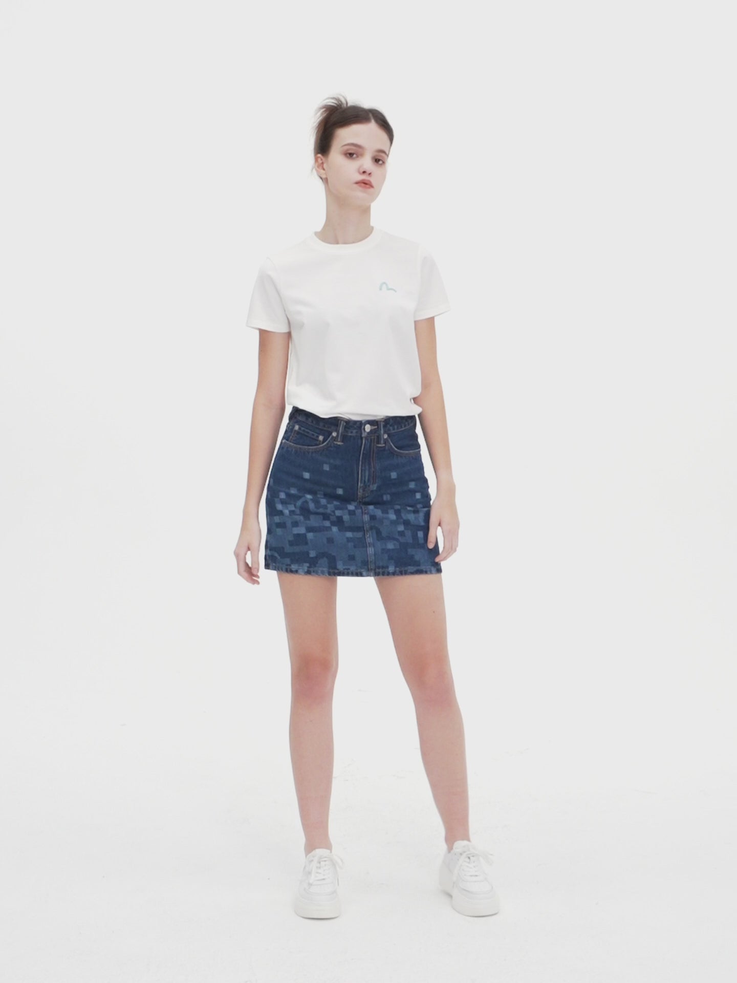 This T-shirt exudes a naturally fresh and fashionable charm. The front features a 3D embossed baby blue seagull logo, simple yet elegant. The back showcases a lively fortune cat embracing the EVISU logo as a focal point, complemented by a harmonious palette of pink hues, creating a visually striking yet cohesive design.