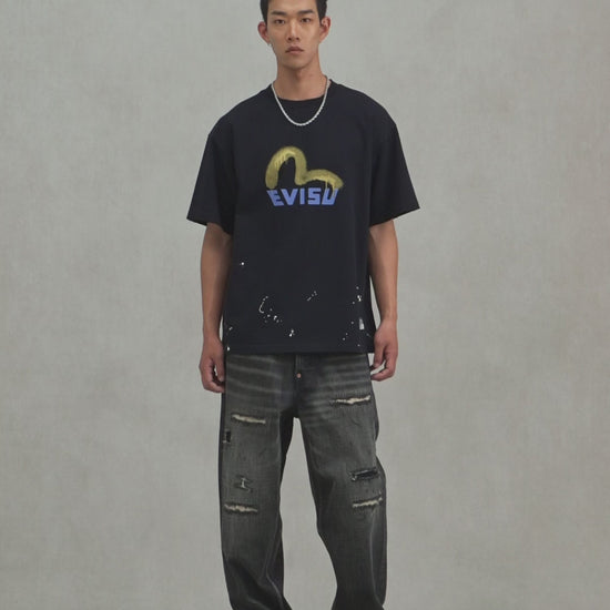 Graffiti-Style Seagull and Logo Print Relax Fit T-Shirt