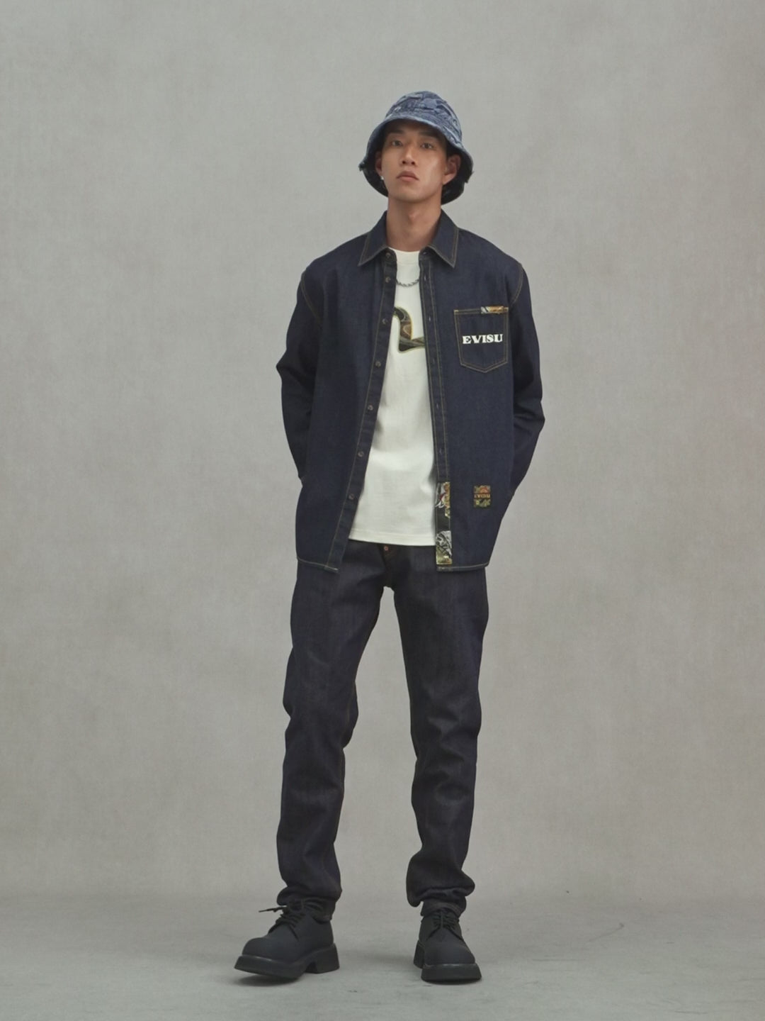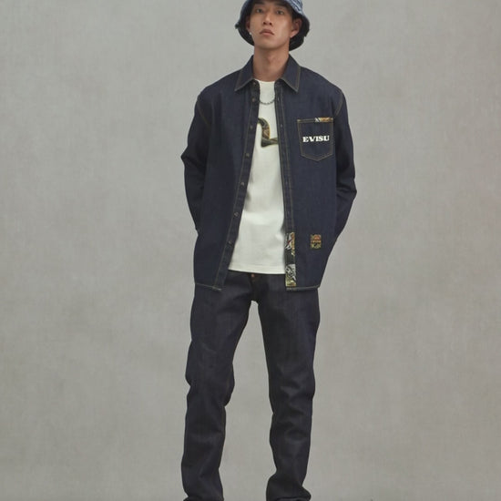 This pair of jeans features a vibrant background with a Grateful Crane Daicock print, complemented by exquisite crane embroidery. It showcases a unique visual effect and high-quality texture. The design merges traditional elements with a modern style, perfect for those seeking individuality and artistry in their outfits.