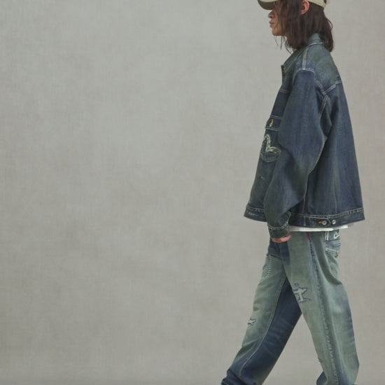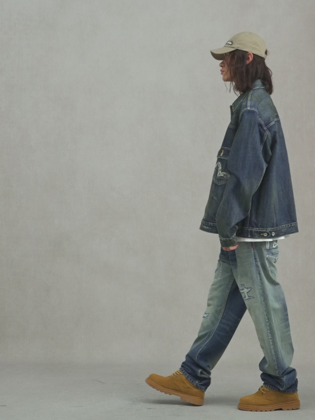 This denim jacket, from the premium collection, exudes a cutting-edge fashion vibe! The relaxed fit silhouette perfectly aligns with modern trends, showcasing a carefree street-ready attitude. Treated with Japanese wash techniques, it features a lived-in, soft texture full of character and storytelling. The hand-stitched seagull embroidery on the patched pockets adds an artistic and individualistic flair, reminiscent of vintage high-end pieces. Slip it on to instantly become the center of attention, highlighting your unique style!